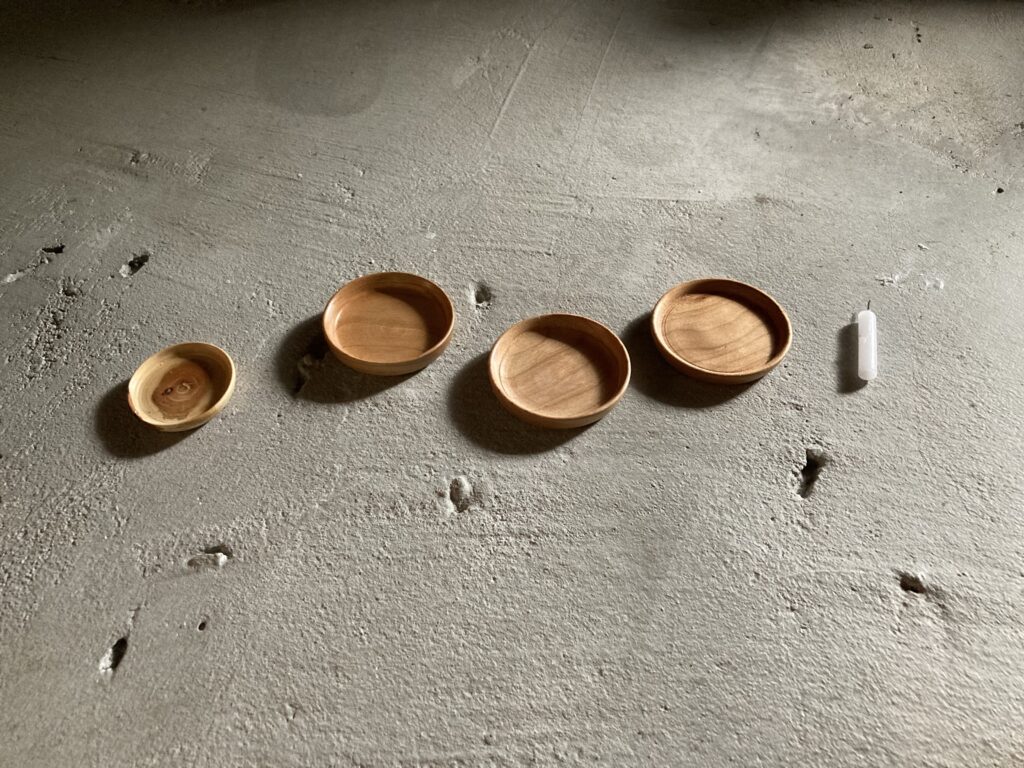 樫の木は波うつ木目が表情豊かで、小さなグラスにしてもよい味を出してくれた。